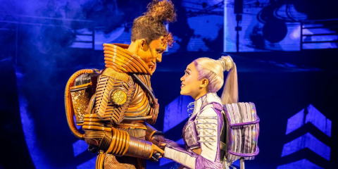 演出は、奇想天外でありながら、幸せ感いっぱいのミュージカル『&ジュリエット』を大成功させたLuke Sheppard。彼は、スターライトを進化させ、時代に合わせた演出を成功させています。登場する列車は、水素電車に変え(ラステインの友人ダスティン役が水素電車ハイドラに)、声だけの演出だった列車レースのコントロールには、実際に子供を登場させ私たちに壮大で疑似体験的な夢を見せてくれます。また、電車は男性、客車は女性という概念を取り払い、あえて混ぜたり、退役電車ポッパをママ・マッコイという母性愛で描いてみせた点も新しいものでした。