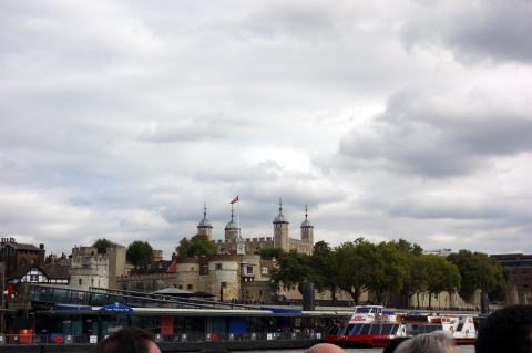 エリザベス1世が姉メアリー王女の陰謀によってロンドン塔へ幽閉されたのは、このテムズ川水門のゲートから。曇り空の下、船からロンドン塔を見上げると、不気味な気持ちにさえなり、歴史的興味のテンションは上がります。