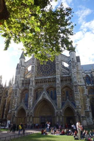 ウィリアム征服王以来、イギリスの戴冠式が行われ、2011年ウィリアム王子とキャサリン妃のウェディングが行われたことでも有名なウェストミンスター寺院へ。ウェストミンスター駅を出ると、目の前には、ビッグベン(エリザベスタワー)がそびえ立ち、その隣に佇む美しいゴシック建築がウェストミンスター寺院。