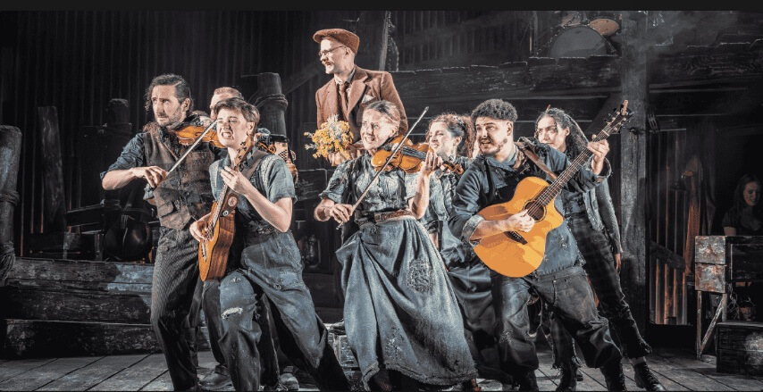 俳優たちが楽器を奏で歌い上げ、活気で満たされた舞台観客の想像力を無限に引き出す手法を備えた壮大なドラマ